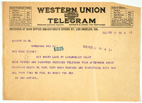 Thanks for this. The “Tina” in the Richey telegram, fwiw, is Tina Modotti — Roubaix (“Robo”) Richey was her husband.