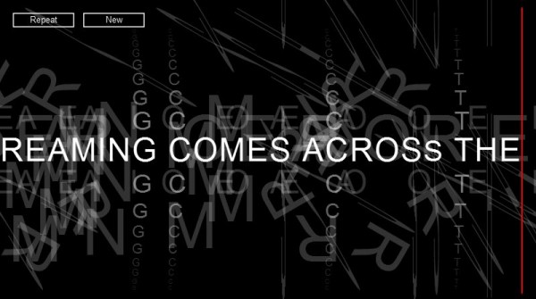 “Repeat After Me,” the second in the series of commissions I’ve made for the SFMOMA blog, is the latest node in piringer’s explorations into networked poetry (you can even Tweet your creation), electronic sound generation — the letters you type become attached to their phonemes, though with a decidedly European inflection — and visual poetics. Enjoy!