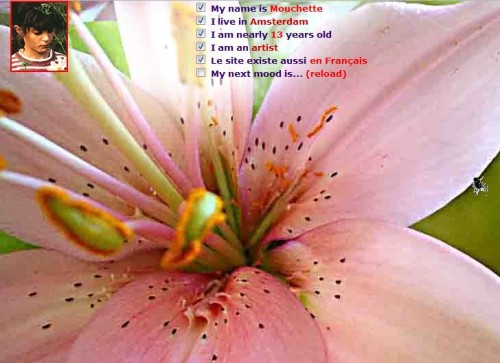 An early internet piece that garnered a lot of attention (and appears to have been accepted into some canon of new media art) is the website Mouchette.org, which purported to be the personal site of a young French girl living in Amsterdam; her name is a clear evocation of the young, disturbed girl in Robert Bresson’s film of the same name. The site is a mélange of questionnaire/checklists, awkward photographs of toys, chat room transcriptions that suggested sexual predation, and animated flies buzzing around. Voyeurism and abject self-exposure seemed to be equally invoked; in the days before MySpace, one didn’t chance upon the websites of preadolescent girls unless you really tried. The insistence in the design of full-screen images — which often degraded the jpeg such that nothing was terribly sharp, replete with “jaggies” of all sorts (Thomas Ruff would exploit this quality of the jpeg quite wonderfully) — was overwhelming (none of the clean angles of good information architecture here) and suggestive of an ineptness born out of social desperation and boredom. The creator of this site has since been revealed, but I’ll go along with the tradition of most editors and critics not to link his name to this piece.