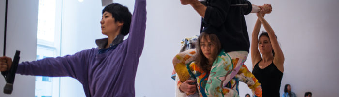 Mina is wrapped in red paper, a high-fashion garment that spills to the floor in a long train. Eleanor pushes against the underside of a railing with her foot, manipulating it like so many other things in the dance — chairs, rolling racks, clothes, a giant garbage can — and makes the museum’s architecture itself … Continue reading Future Formers, Former Futures